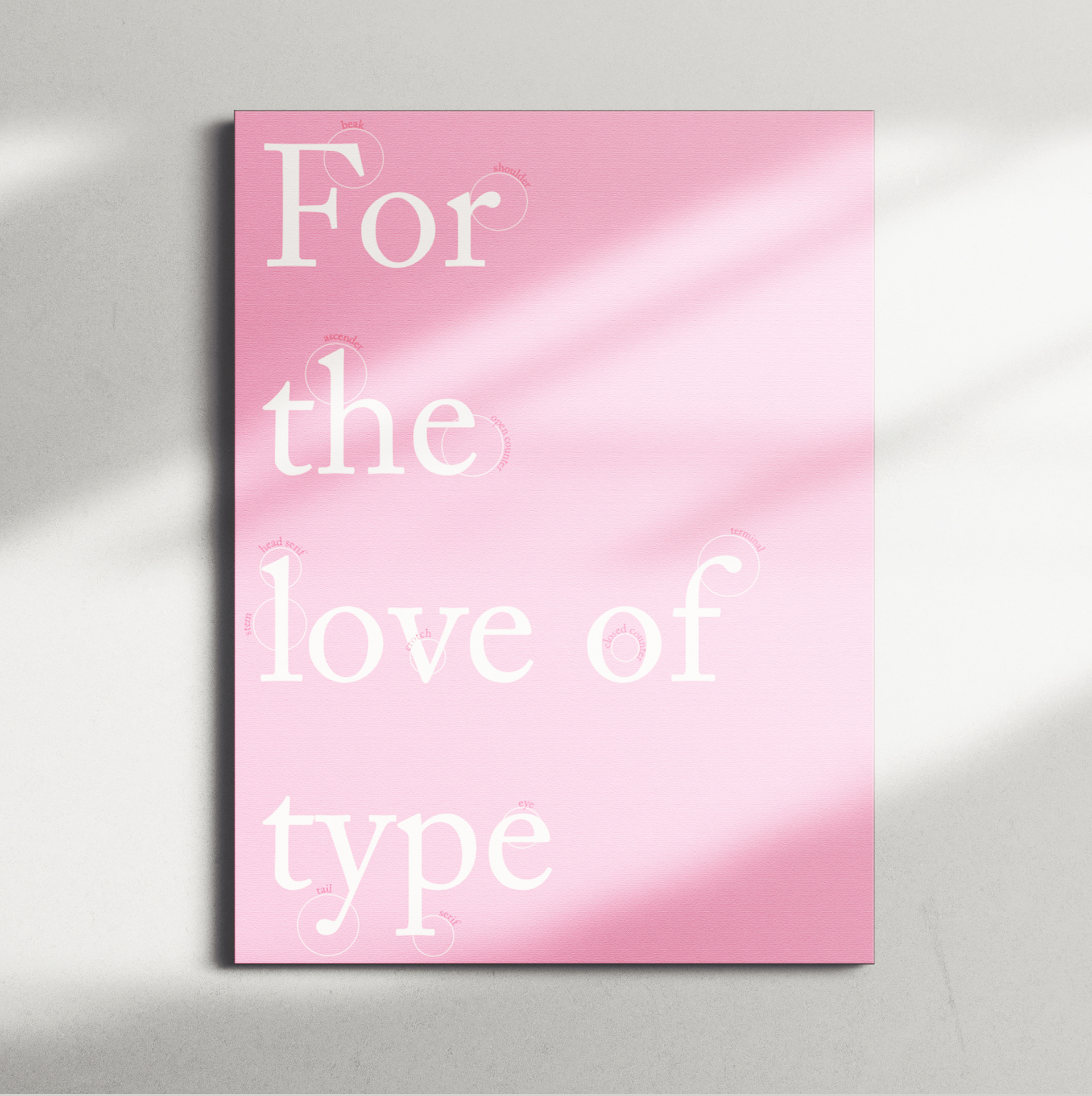 For the Love of Type is a typographic poster that leans into the fun side of lettering while breaking down type anatomy in a clear, visual way. The design highlights key parts of letterforms through bold hierarchy, thoughtful spacing, and intentional layout choices that keep the information easy to follow and visually engaging. By mixing educational content with expressive typography, this project celebrates the personality of type while reinforcing how structure, proportion, and detail play a major role in effective design.