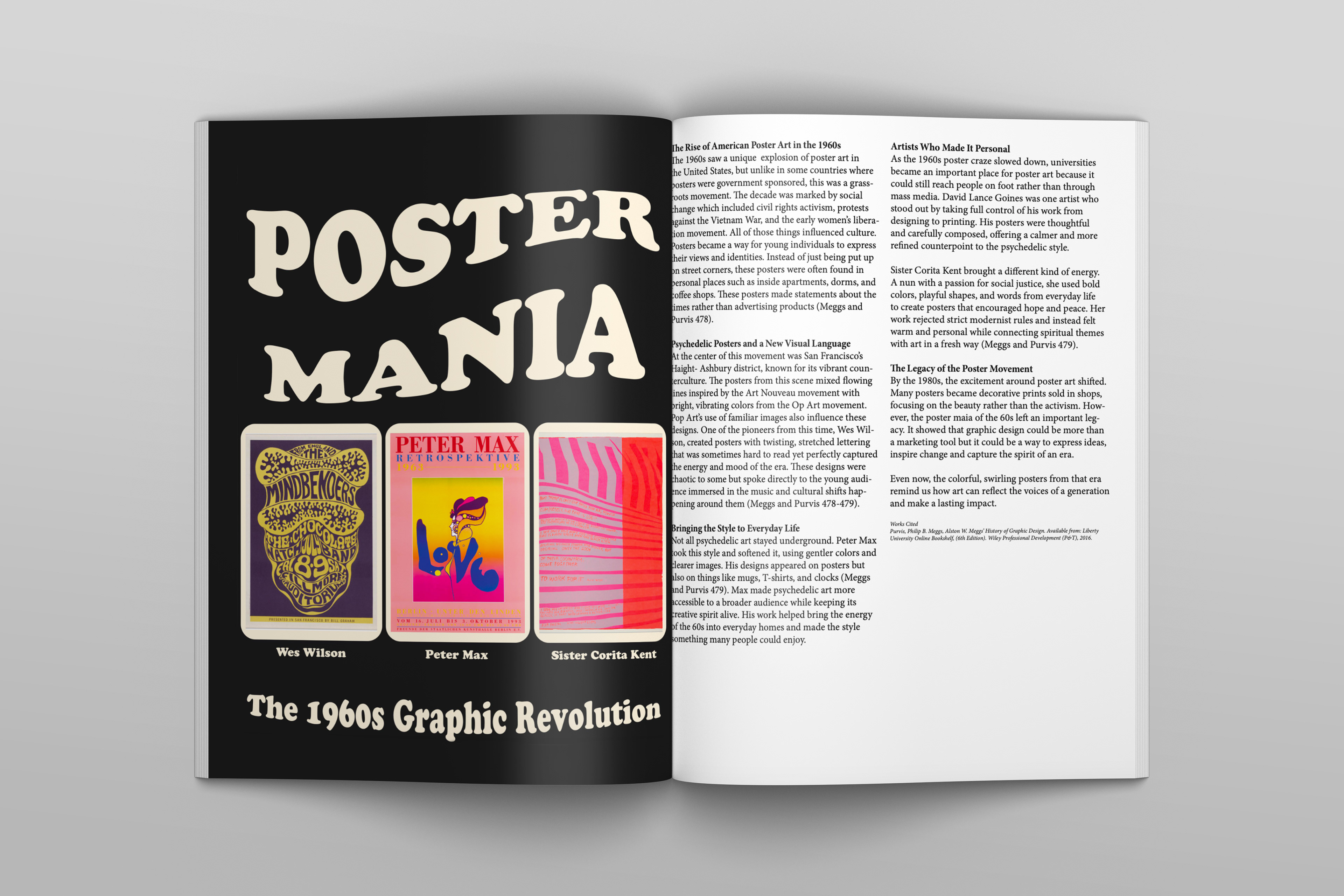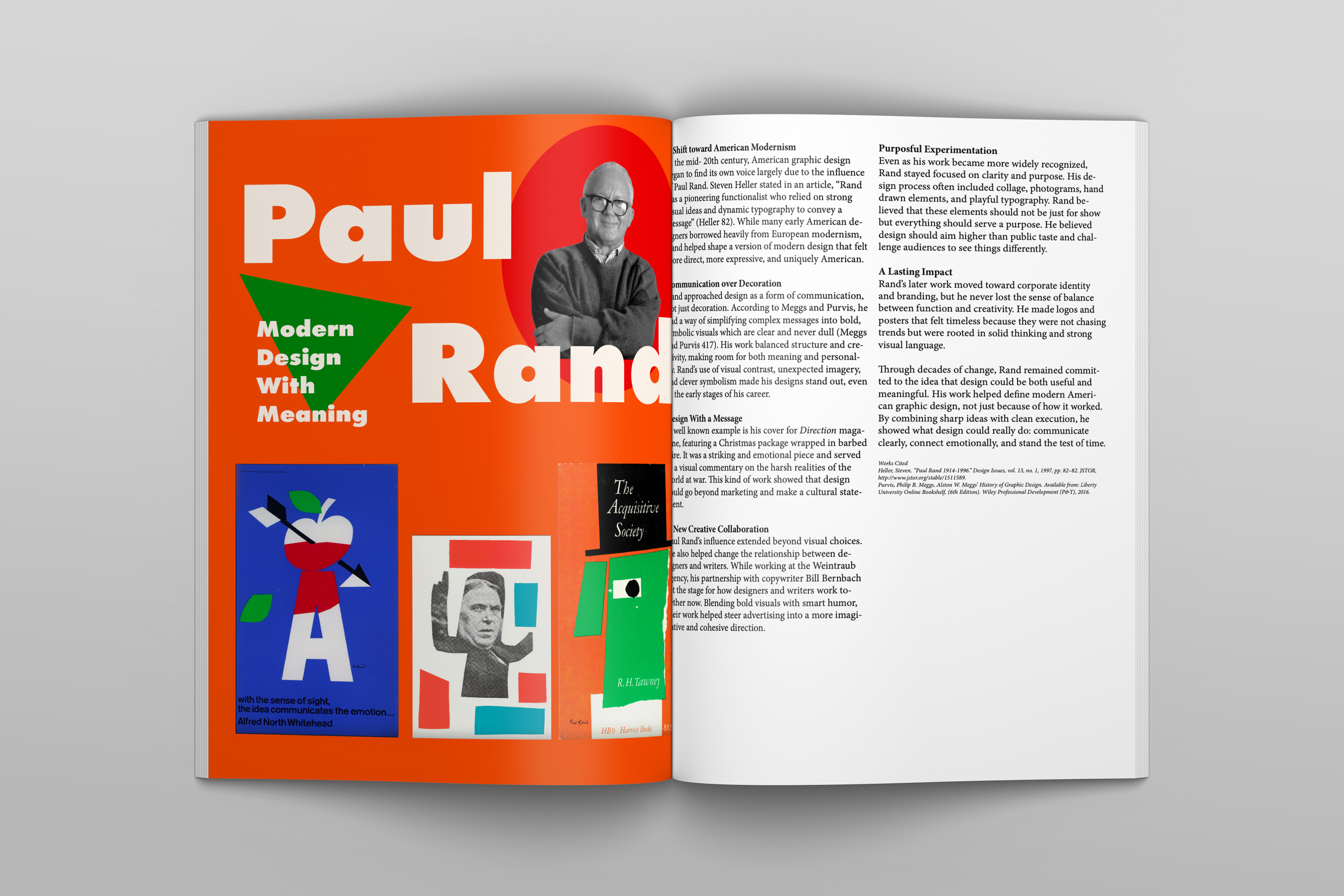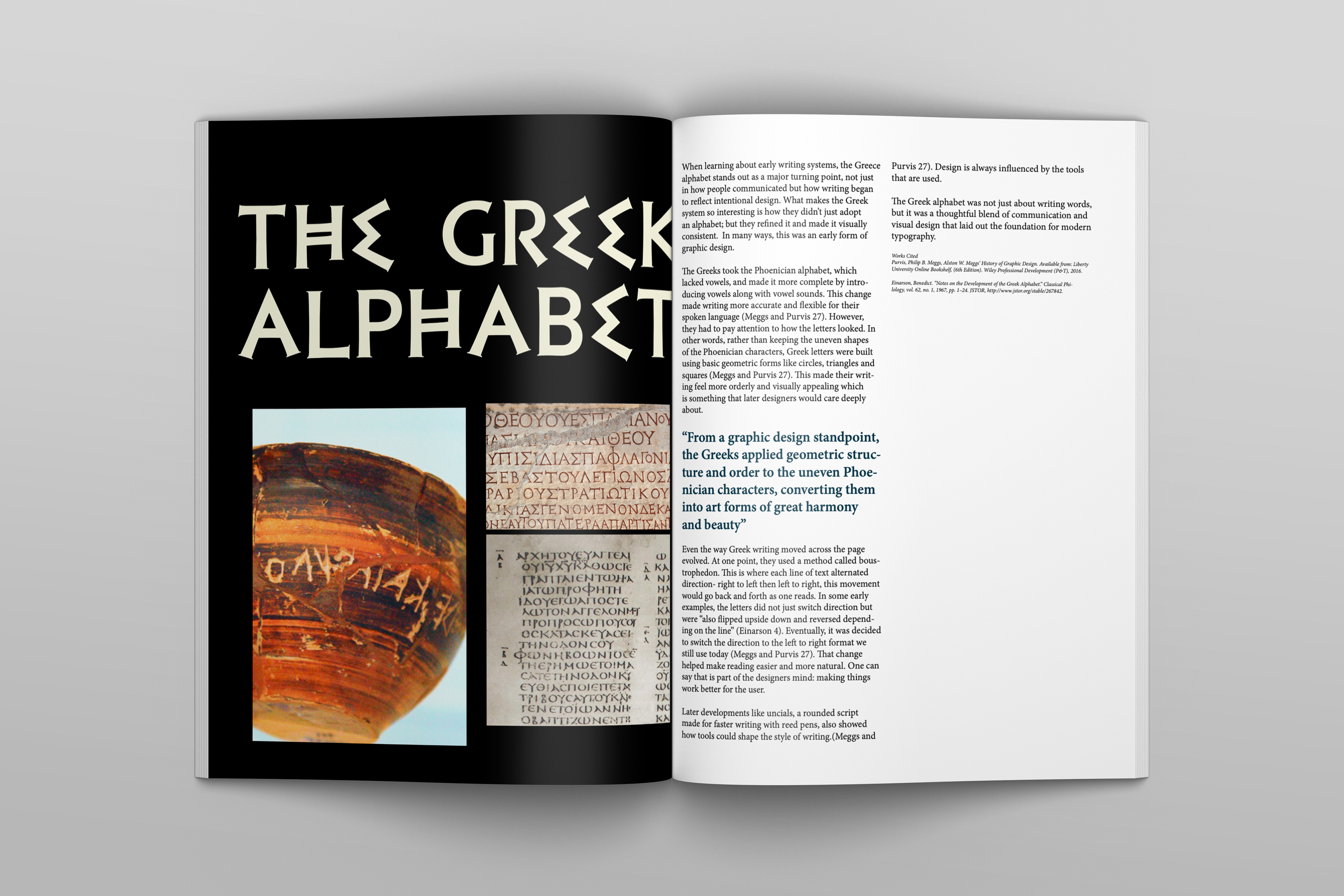 This booklet was created for an 8-week History of Graphic Design course, documenting weekly explorations of key design movements, artists, and ideas from the readings. Each two-page spread pairs a research-based essay with a digital composition, translating historical concepts into visual layouts. Over the course, my designs became more refined, with stronger hierarchy, typography, and visual consistency. The final booklet brings these spreads together into a cohesive publication, reflecting both my understanding of design history and growth in layout and composition.